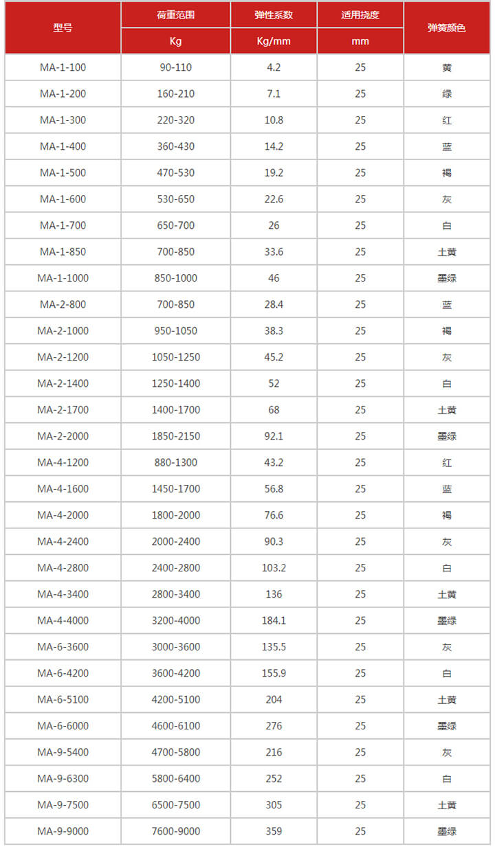 橡膠彈簧減震器技術參數