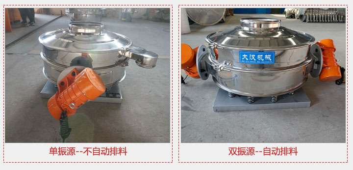 直排篩分單振源與雙振源兩種,其中單振源直排篩用到物料上主要產(chǎn)生上下振動(dòng),無自動(dòng)排料功能,而雙振源直排篩使物料在篩面表面產(chǎn)生漩渦運(yùn)動(dòng),有自動(dòng)排料功能。