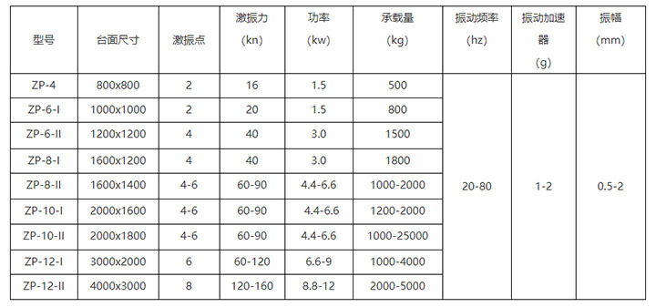 三維振實臺技術參數