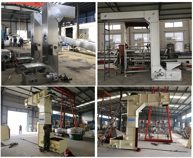 z型斗式提升機食品廠配合包裝機輸送,輸送小麥,碎礦石輸送等現場案例展示。